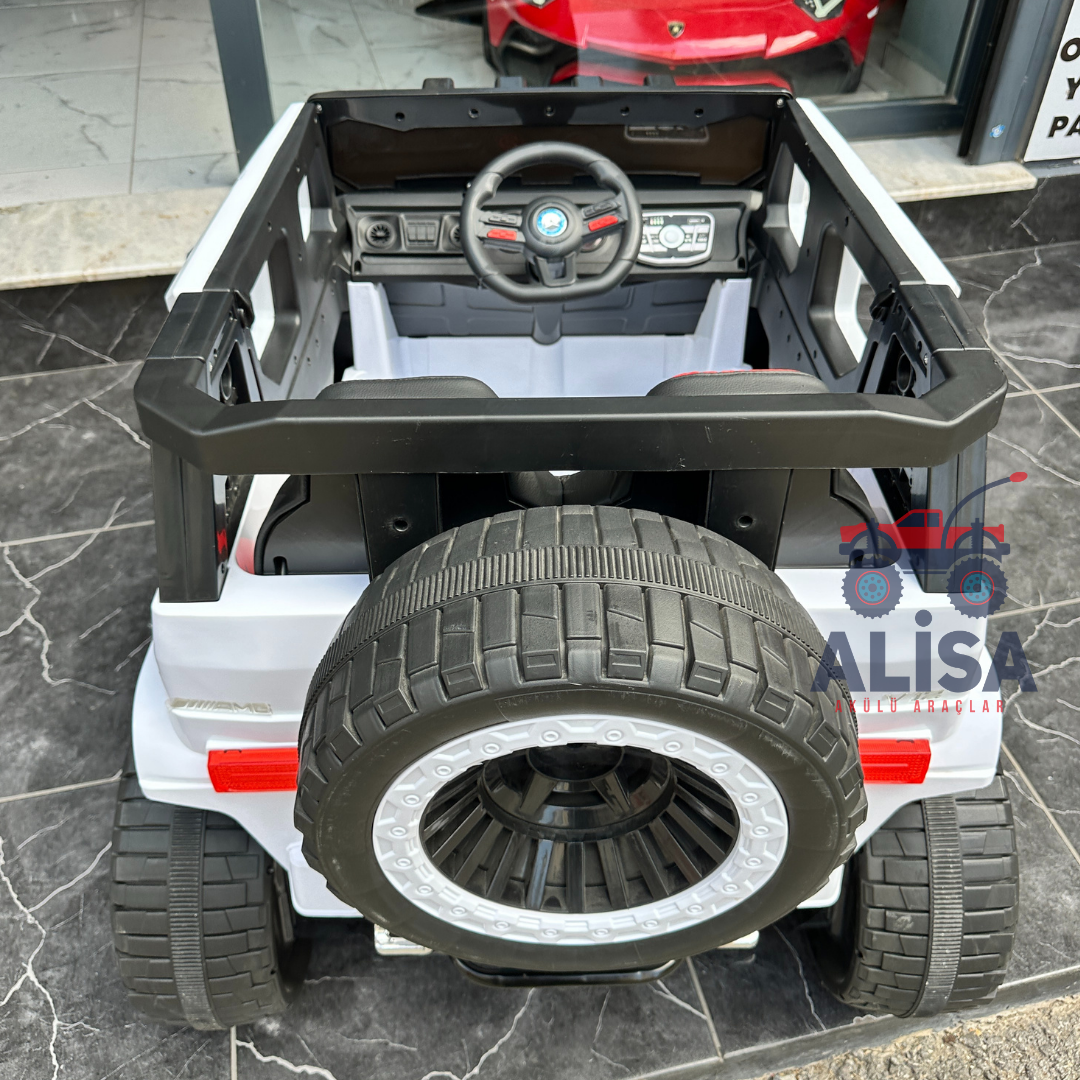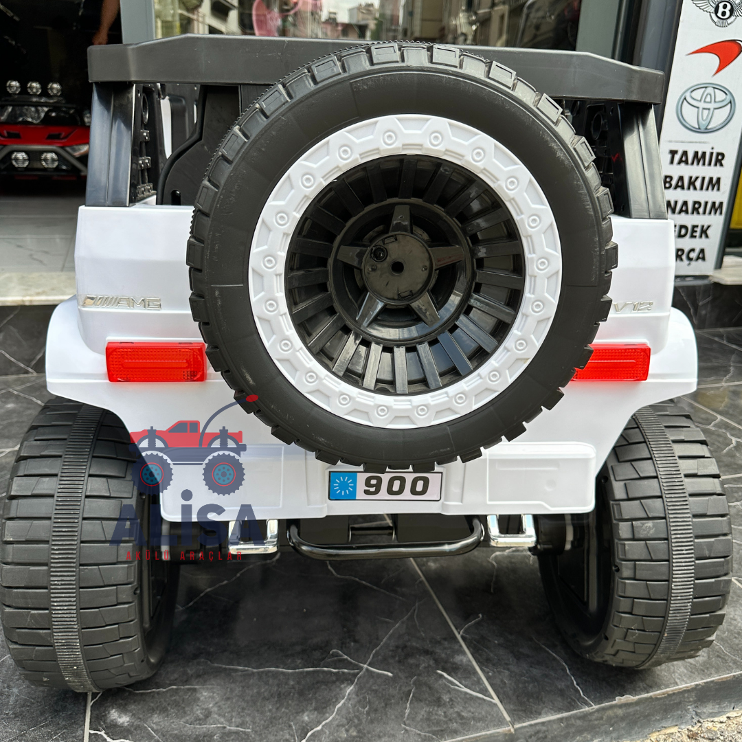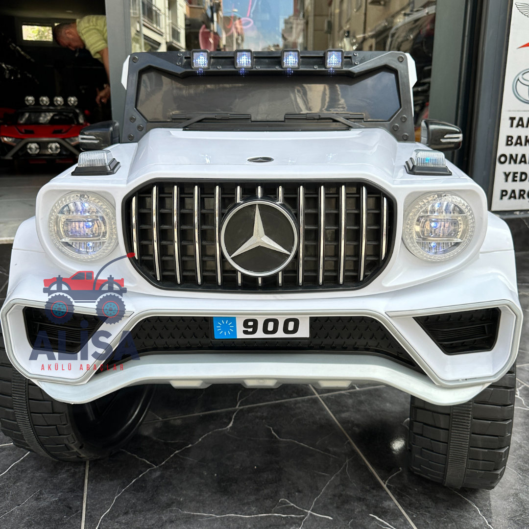 Beyaz Mercedes G900 Işıklı Jeep, çocuklar için tasarlanmış özel bir akülü arabadır. 12 volt gücüyle çalışır ve 4×4 özelliği sayesinde her türlü arazi koşulunda güvenli ve keyifli bir sürüş deneyimi sunar.
